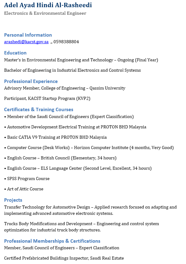 أتابع أحدث التطورات في التكنولوجيا وأسعى لتطبيقها في المشاريع الهندسية لتحسين الكفاءة والجودة.شهادات وتوصيات