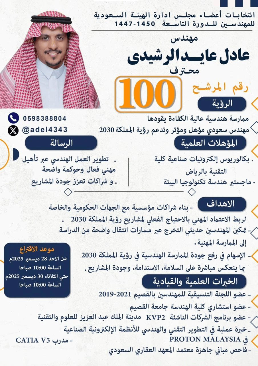 مرحبًا بكم في موقع المرشح م.عادل الرشيدي رقم 100